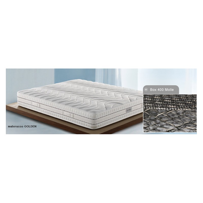L’anima di Golden è costituita dal Box System 400 molle nel materasso matrimoniale, che ne fa un materasso dalle eccezionali qualità di robustezza e compattezza. La fodera presenta nella fascia laterale un inserto in tessuto tridimensionale, Respiro, che ne migliora l'aerazione.