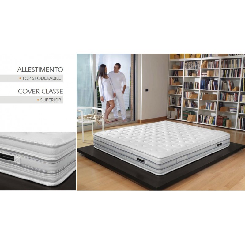 Allestimento Top Sfoderabile, Classe Superior. Con Poliestere ed Elastan (Peso GR/MQ 270). Leggero ma resistente ed elastico, perché composto da due strati con una maggior percentuale di Elastan. Dal prezioso e sofisticato design estetico. In doppia variante: grigio e beige.