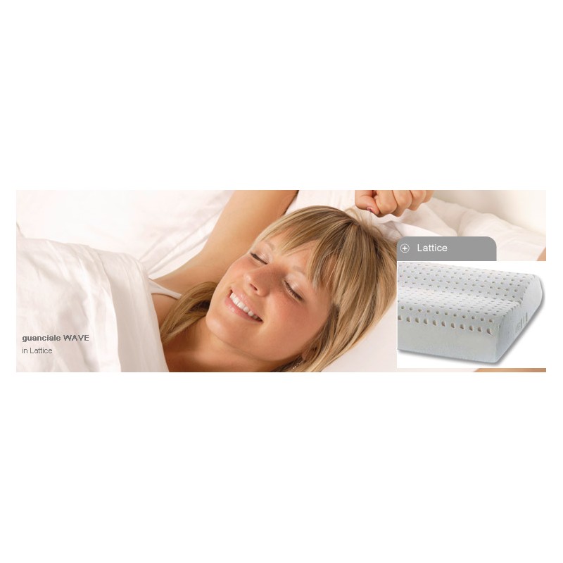 Questo guanciale, in lattice, è dotato di una sagomatura ad onda con altezze differenziate che lo rende particolarmente comodo e versatile.
