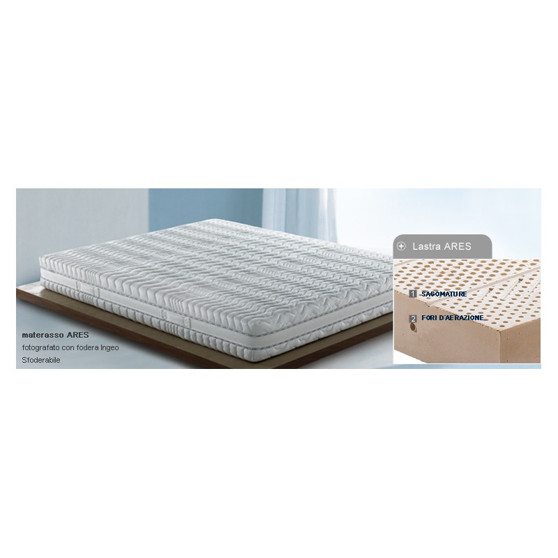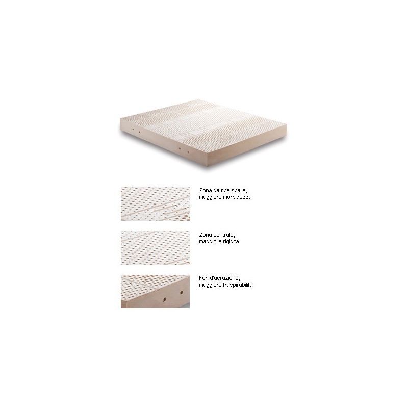 La lastra del materasso singolo e matrimoniale è in schiuma di lattice a densità differenziata in 7 zone diverse per fornire a ogni parte del corpo un sostegno ottimale consentendogli di mantenere la posizione corretta in qualsiasi posizione assunta durante il sonno.
