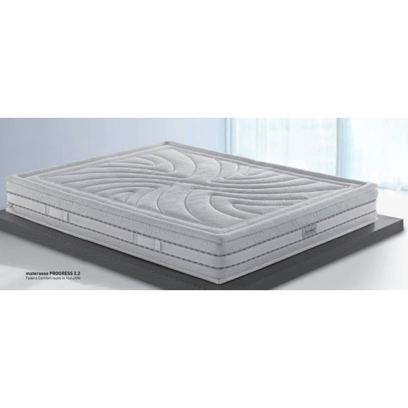Il materasso Progress 2.2 utilizza il sistema fodere. Questa soluzione consente di personalizzare il rivestimento del proprio materasso scegliendo fra diverse fodere con caratteristiche specifiche. In particolare Progress 2.2 può essere rivestito con la fodera in Myform che presenta un’imbottitura più alta di