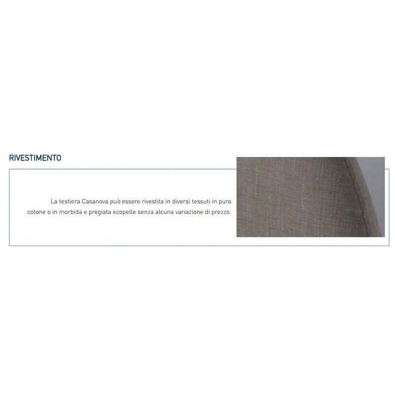 Grazie alla sua forma essenziale, delicatamente curvilinea, la testiera Casanova riesce a vivere in sintonia con qualunque arredamento ed è perfetta per completare ogni letto. È una testiera anche molto pratica, che si presta ad essere rivestita con diversi tessuti.